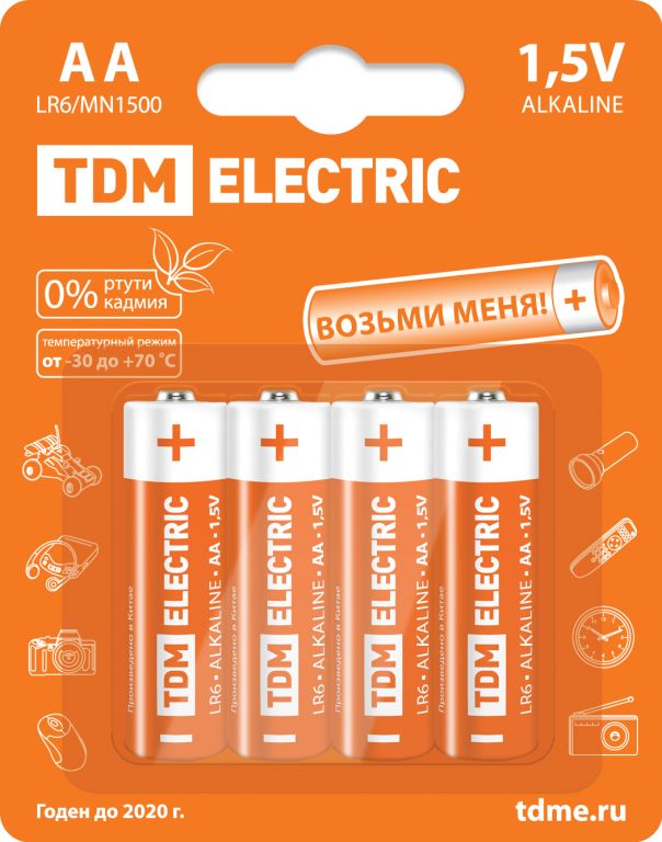 Элемент питания LR6 AA Alkaline 1,5V BP-4 TDM (шт.) | 39,00 | ||